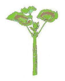 Тщательно вымойте руки и острым стерильным лезвием или ножом обрежьте верхушку на энергично растущей разновидности пеларгонии, например, зональной, на нужной высоте. Затем сделайте V-образный вырез в стебле (клин) (по другому способу такой V-образный вырез не делается, стебель просто надрезается посередине на глубину немного больше, чем срез черенка).