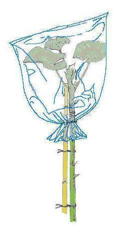 Затем поставьте привитое растение в тени, накройте верхушку прозрачным полиэтиленовым пакетом, который завяжите на стебле под местом прививки, чтобы избежать опасного для прививки обезвоживания.