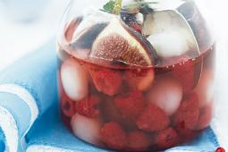 2. Поместите инжир, малину и личи в теплостойкой чаше, сверху залейте сиропом (предварительно из сиропа удалите листья душистой герани и ванильный стручок), охладите до комнатной температуры, затем охладите в холодильнике.