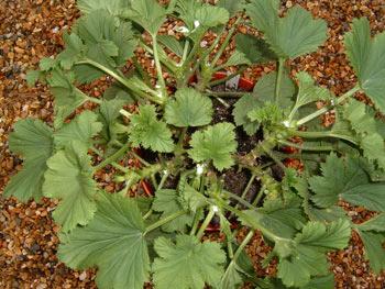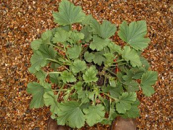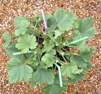 Черенки взяты в марте или апреле, поскольку я нахожу, что они нуждаются в более длительном времени роста при подготовке к выставке, чем зональные пеларгонии. 1-ая прищипка сделана на черенках с 3 парами листьев после того, как черенок хорошо укоренился, и все последующие прищипки сделаны на вновь появившихся ответвлениях черенков с 4-5 парами листьев. Растениям будут сделаны 4 прищипки. После последней прищипки проверяются все растения, чтобы все побеги были прищипнуты одинаково. Растения будут подкармливаться сбалансированной подкормкой всегда только в размере ¼ нормы и только тогда, когда горшки заполнены корнями и препарат Maxicrop будет использоваться дважды с интервалом в одну неделю.