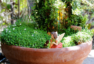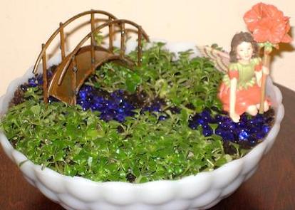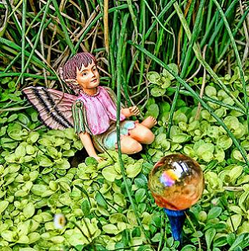 Статуэтки фей и эльфов герани в миниатюрных садах и ландшафтах