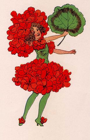 Фея герани. Иллюстрация Сесиль Мэри Баркер из книги “Цветочные феи сада” (“Flower Fairies of the Garden”), 1944 г.