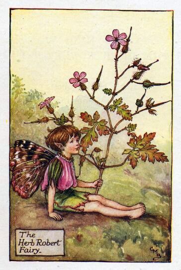 Эльф герани Роберта (Herb Robert). Иллюстрация Сесиль Мэри Баркер из книги “Цветочные феи лета” (“Flower Fairies of the Summer”), 1925 г.