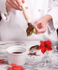 Используя кисточку с плоским наконечником, нанесите шоколад равномерно по задней части листьев.