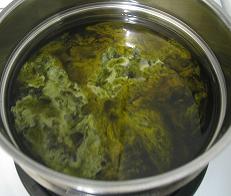 Поместите листья душистой герани в эмалированную посуду, залейте маслом сладкого миндаля или маслом из косточек абрикоса и нагревайте смесь при очень низкой температуре в течение 20 минут.