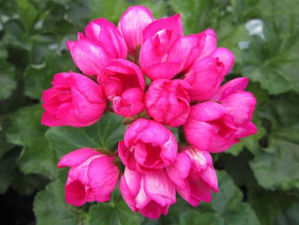 Тюльпановидные пеларгонии легко выращивать – уход по посадке, обрезке и удобрениям такой же, как за обычными зональными пеларгониями. Растения охотно и очень продолжительно цветут, формируя огромные шапки. Подкармливайте пеларгонии весной и летом каждые 2 недели водорастворимым удобрением с высоким содержанием калия. Прищипка побегов будет способствовать лучшей кустистости, а удаление отцветших цветов более обильному цветению.