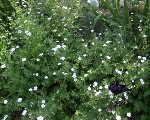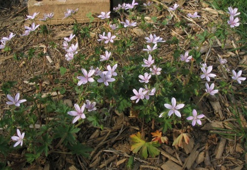 Мы сажаем этот невысокий журавельник в нашем каменистом садике (рокарии), где он был подавлен диким молочаем (Myrtle Spurge/Euphorbia myrsinites). Когда я наконец урезал расползающиеся стебли молочая, вид оказался довольно плачевным. В следующем году мы должны будем переместить этот журавельник туда, где он сможет цвести во всей красе.