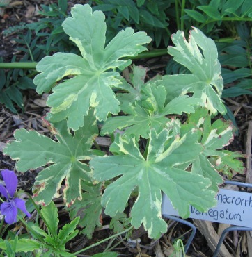 Одна из разновидностей герани крупнокорневищной 'Ingwersen's Variety', выращенная нами из семян, имеет бледно-розовые цветы. Второй культурный сорт этого растения, который мы выращиваем, 'Вариегатум' ('Variegatum'), имеет листья с беспорядочными белыми брызгами.