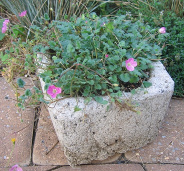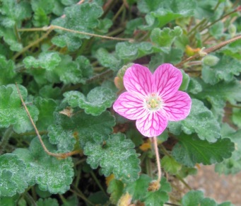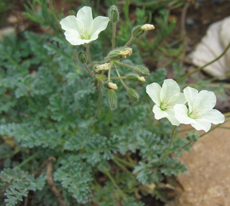 Растение выращено из семян с названием Erodium pelargoniflorum, но я думаю, что его истинное название - E. trifolium (иначе называемый E. pelargonifolium). Обильное цветение в первый сезон после проращивания семян. Листья растения действительно напоминают листья пеларгоний. Подходящий аистник для каменистых садиков (рокариев).