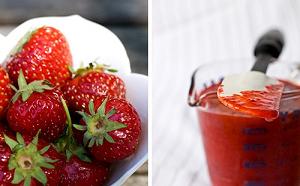 Вымойте и переберите клубнику. Измельчите клубнику в блендере или пищевом комбайне до состояния пюре. Для рецепта необходимо 2 чашки клубничного пюре.