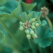 На дефицит бора указывают поврежденные цветочные бутоны и конусообразная форма листьев герани (эти же симптомы сигнализируют о плохих условиях произрастания — недостатке освещения, чрезмерно высоких температурах и скученности растений).